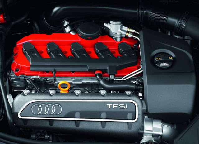 A aceleração do carro é visceral, mas, ao mesmo tempo, muito suave e precisa. O conjunto é um motor 2.5, 5 cilindros e TURBO. Isso tudo se traduz em cerca de 340 cvs e torque de aproximadamente 46 kgfm. Aliado com o excelente câmbio de dupla embreagem AUDI (pioneira em colocar esse câmbio em carros de passeio), palavras não fazem jus à pancada que o carro dá nas acelerações mais fortes. A AUDI diz que o hatch faz de 0-100 kmh em cerca de 4,5 segs.
