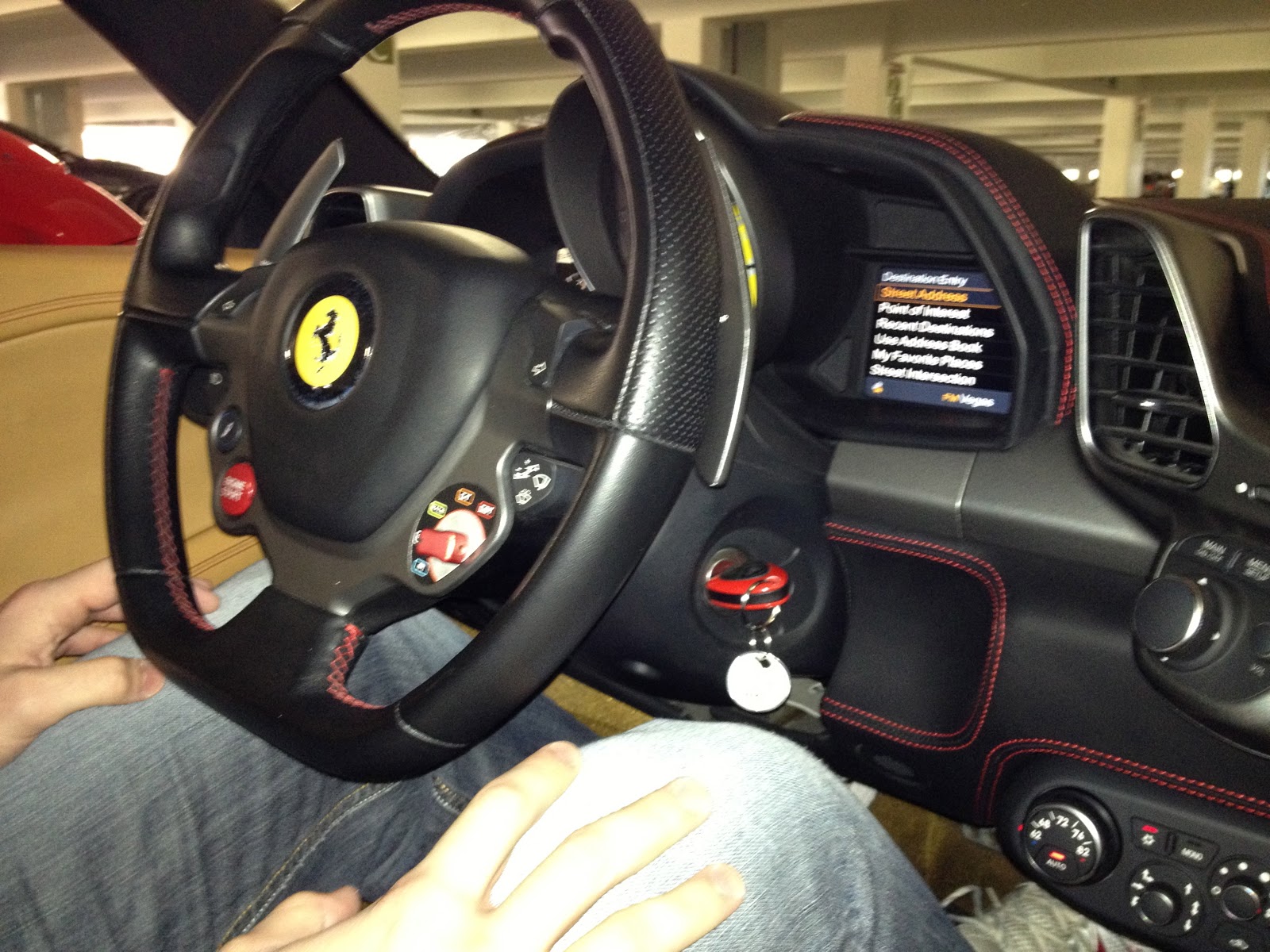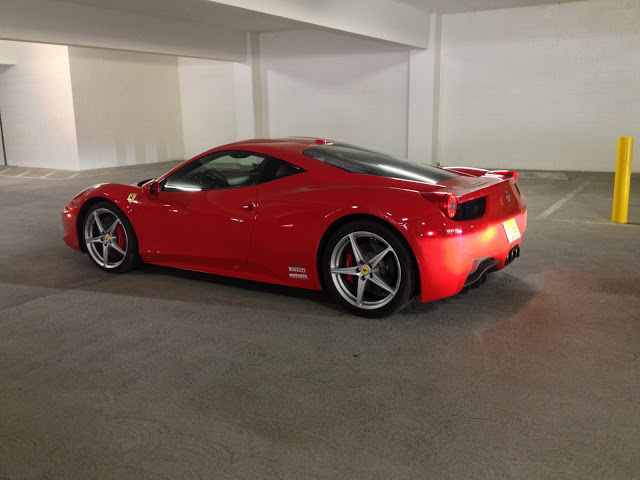 Entro na 458. Nenhum sinal de carro cansado ou esmirilhado. O carro dá sinais de uso, mas nada fora do comum. Quando olho o odômetro, observo um número nefasto que, a primeira vista, parecia ser 4000 e poucas milhas, mas, quando percebo atentamente, vejo singelas 40.000 e tantas milhas rodadas. Checo o carro para ver ser os extintores estão por lá, haja vista a fama inflamável da 458… ok… ok… piada infame, mas que tinha que ser feita com todos os meus amigos Ferraristas.