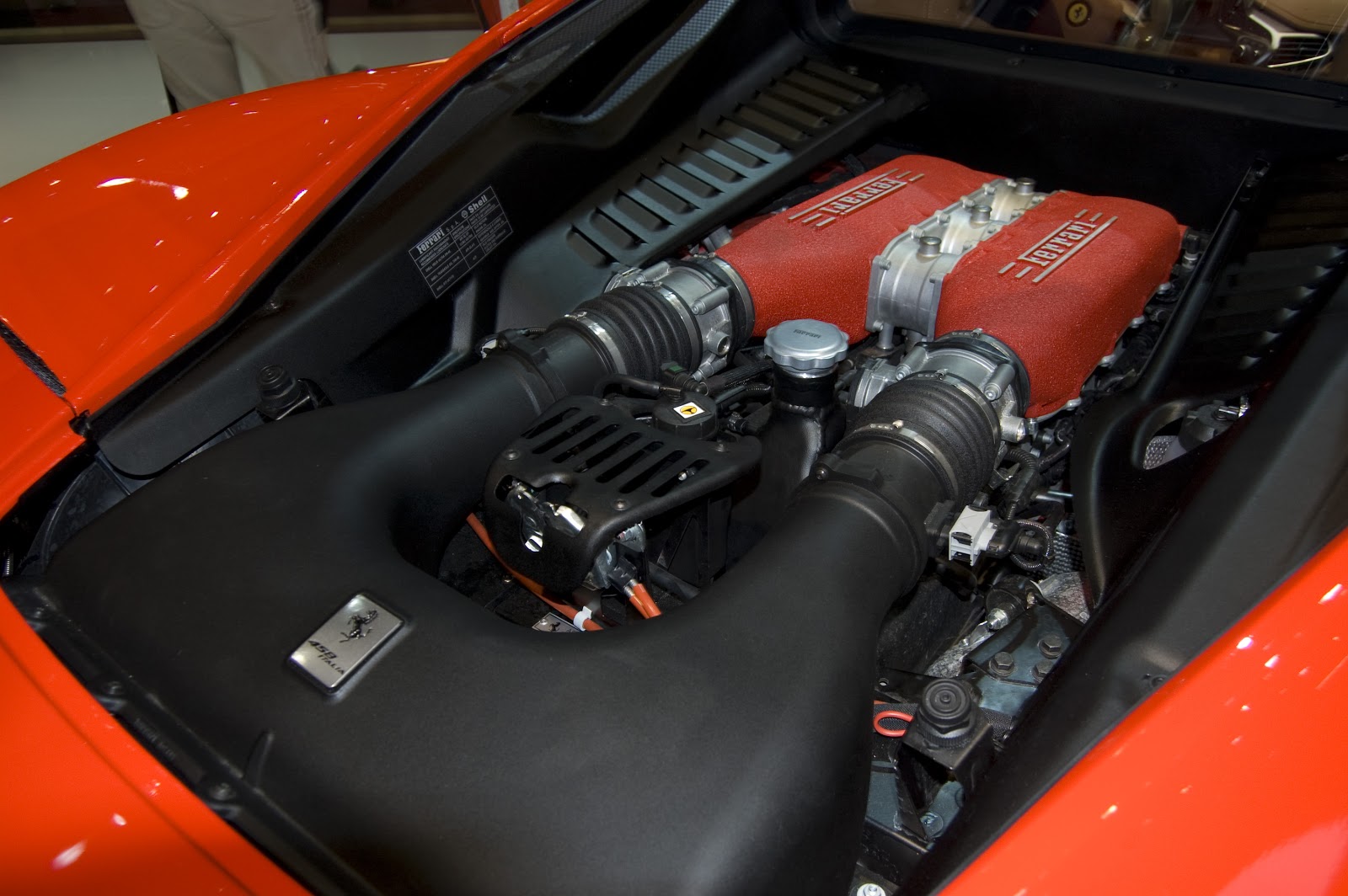 Um pouquinho de aspectos técnicos da 458. O motor é central, 4.5 litros, V8, com tecnologia de injeção direta de combustível, que produz 562 Hp a 9.000 rpms (beliscando o corte de giros) e 55 Kgfm de torque a 6.000 rpm. Como toda boa Ferrari, é tração traseira.